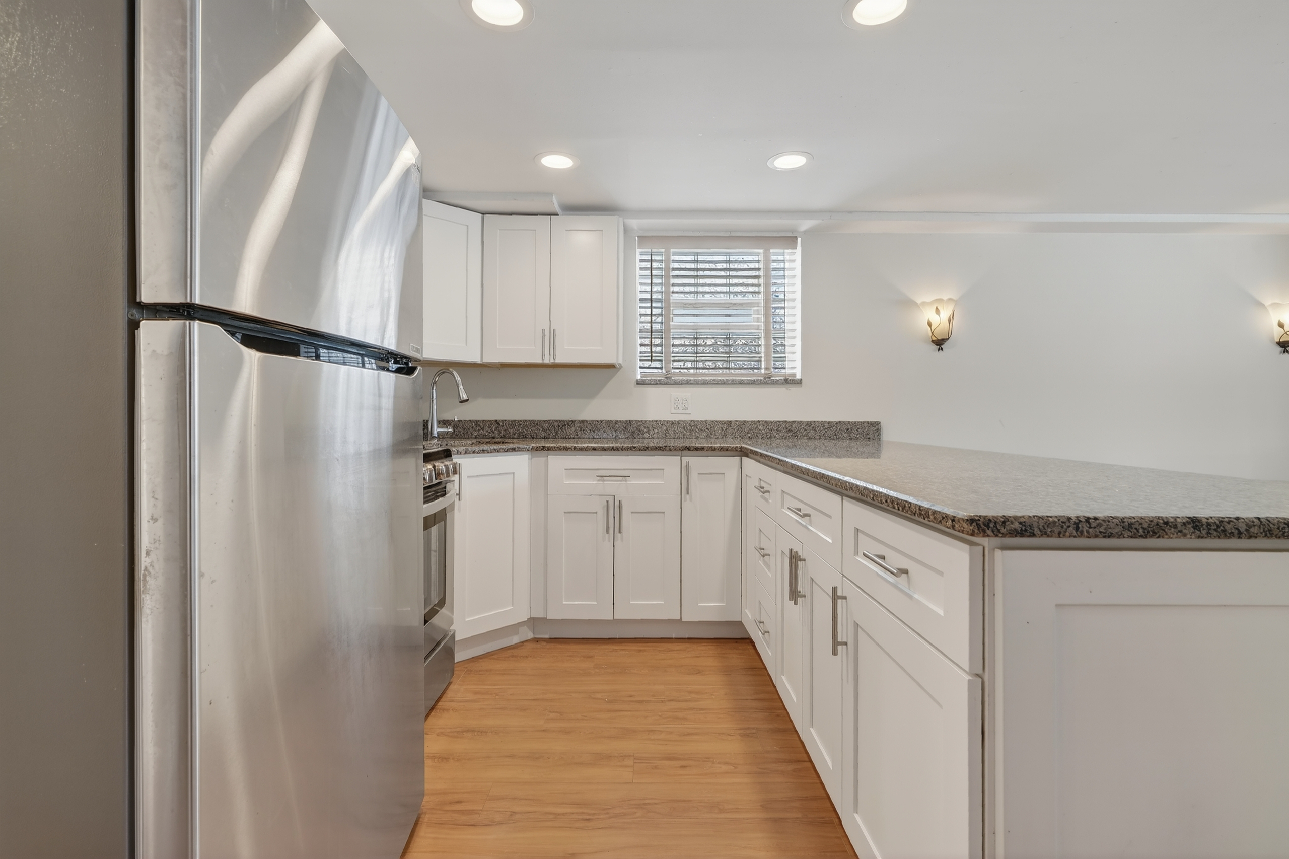 - -Kitchen with white cabinets, slow-close drawers, granite and SS apliances
